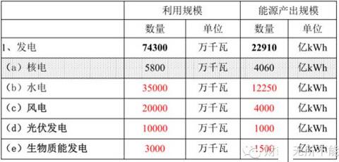 3.2030年可再生能源发展目标:水电500GW ,风电400GW ,光伏500-600GW ,生物质50GW ,核电200GW。