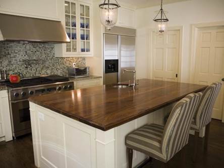 木材漂亮、温和、耐用,因为划痕一般可被掩盖。按照制造商Craft Art的说法,木材台面的天敌是无三脚架的锅(原文为Crock-Pot)——你必须防止表面直接受热。安装过程中,给木材呼吸的空间是很重要的;不能将其安装在无法移动的地方(如三面有墙),或将其直接安装在基材上面,木材会扭曲。