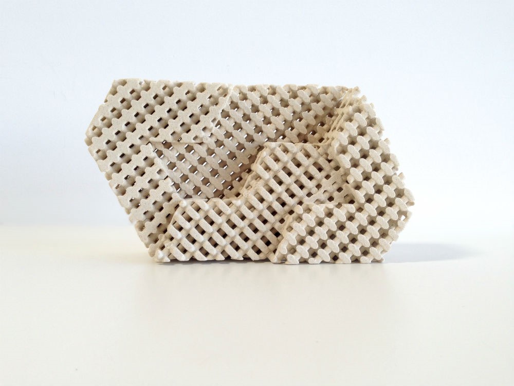 与空调相比,这种被动的冷却系统廉价而且节能。相比你已经猜到,Emerging Objects今天推出的是一款3D打印公司的新产品。这是由是奥克兰公司根据蒸发冷却原理制备的3 d印制陶瓷降温砖。这种陶瓷块大约手掌大小,其本质是由木格子和陶瓷罐行成的轻质混合板。根据设计师的构想,利用一种能够像海绵一样吸水的多孔材料,当空气通过木格子时,水在曲堤蒸发形成降温效果。
