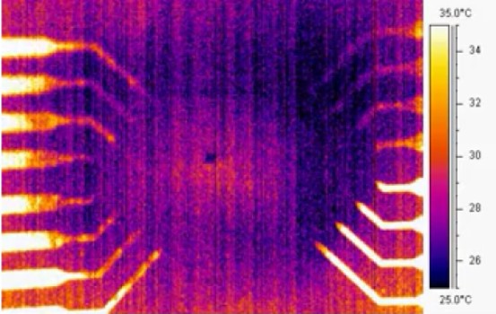 基于液晶材料延续工作的一些早期结果。由于液晶在电场下排列成纳米管,从而改变材料的电结构。亮色表示材料局部发热,被认为是由于材料进化生成新的导电通道造成的。图片版权:Mark Massey,英国杜伦大学(Durham University