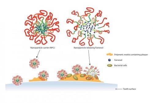 纳米颗粒媒介正向牙洞中(能导致牙菌斑)释放法尼醇.(来源:罗切斯特大学/ Michael Osadciw)