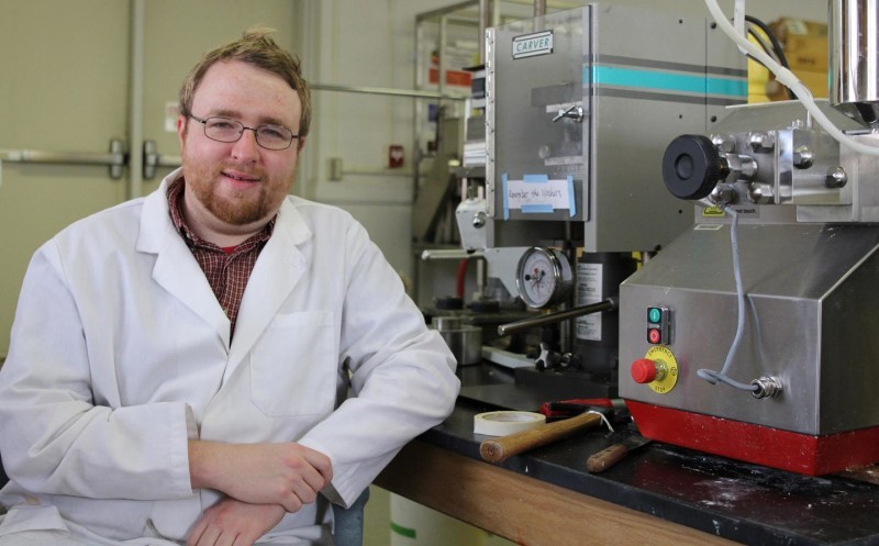 Alex Jones,纺织品、销售和内饰学部的博士生,主要研究生物塑料的抗菌性。(来源:Cal Powell/UGA)