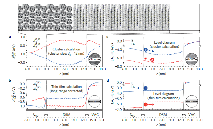 有机太阳能电池中,结构有序是至关重要的:它能降低能量无序态、增加电荷和激子迁移率、促进激子解离。由于电子态的空间局域性,对光电过程的微观描述倾向于忽略中尺度结构的影响。Poelking 等人最近证明对中尺度有序态的研究可以很好的解释在很多光伏体系中能级位置和排列之间的理论预测和实验结果间的矛盾,而且这种解释的依据是来自于直观的实验结果。他们据此预测的平面异质结太阳能电池的开路电压值与实验值有非常好的吻合。(Nature Materials DOI: 10. 1038/ NMAT 4167)