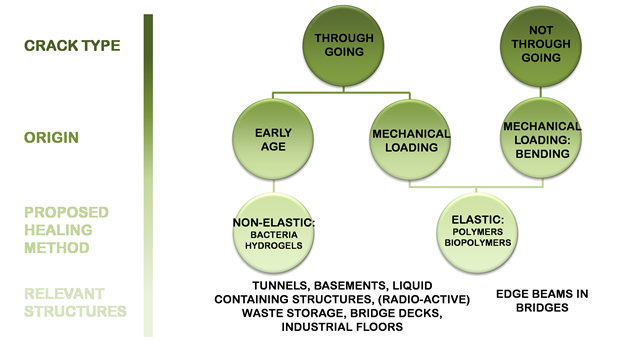 大致上,将特殊聚合物添加到水泥混合物中,会使小裂缝愈合。科学家解释为,小裂缝本身并不是很大的问题,而阻止其长成大裂缝才是问题关键。“如果有一个小裂缝就立即开始修补,那么就没有会长大的风险。所以总结构不会有失效的风险。我们要在问题足够大之前阻止它”。