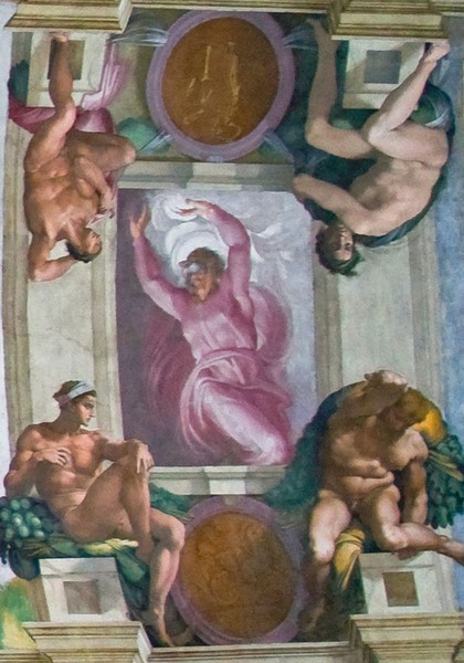 图1:《分开光明与黑暗》,西斯廷教堂的天花板上米开朗基罗的壁画之一,现在用LED照明。