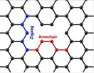 该图显示石墨烯中锯齿型和扶手椅型缺陷。