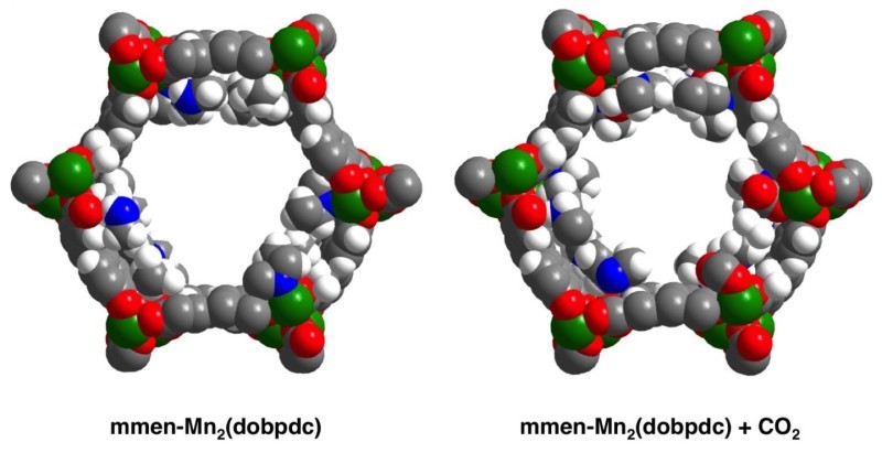 这种金属氧化物框架的二胺改性产物(MOF),可以在室温下在潜艇内除去二氧化碳,也可以在100华氏度的电厂废气中捕捉二氧化碳。