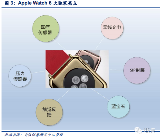2、Apple Watch六大独家亮点:医疗传感器、无线充电、压力传感器、触觉反馈、蓝宝石和sip封装。