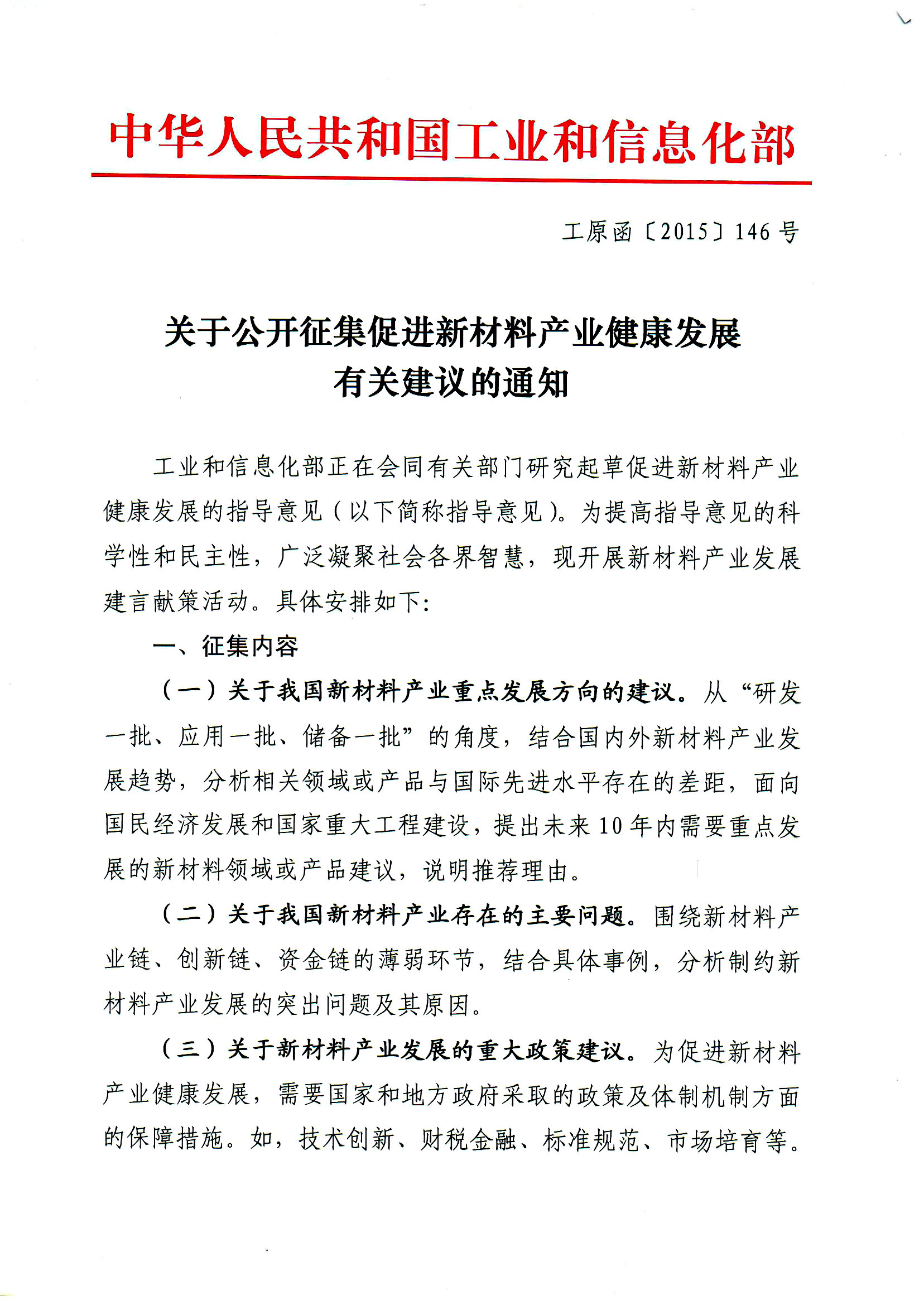 关于公开征集促进新材料产业健康发展有关建议的通知