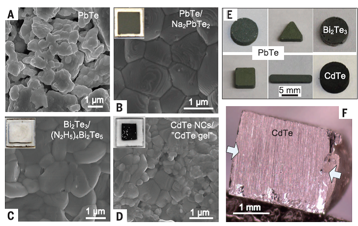 半导体纳米粒子的光学和电子特性可以通过改变粒子的尺寸和组分来调控,但是,粒子界面间的不良接触会削弱器件中纳米粒子的性能。Dolzhnikov等人合成了一系列金属硫族化合物,这些化合物可以起到分子“焊料”的功能。它们可以用于连接光伏器件和热电器件中的半导体组分。加入这些“焊料”可以将纳米颗粒连接到一起,使得纳米颗粒呈现出不同的形貌。这项技术开启了纳米材料加工的新篇章。(Dmitriy S. Dolzhnikov et al. DOI: 10.1126/science.1260501 Science 347, 425 (2015))