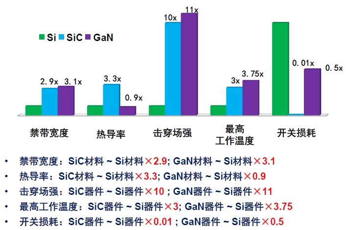 目前全球40%能量作为电能被消耗,而电能转换最大耗散是半导体功率器件。曾经的“中流砥柱”Si功率器件已日趋其发展的材料极限,难以满足当今社会发展对于高频、高温、高功率、高能效、耐恶劣环境以及轻便小型化的新需求。以SiC为代表的第三代半导体材料凭借其优异属性,将成为突破口,正在迅速崛起。