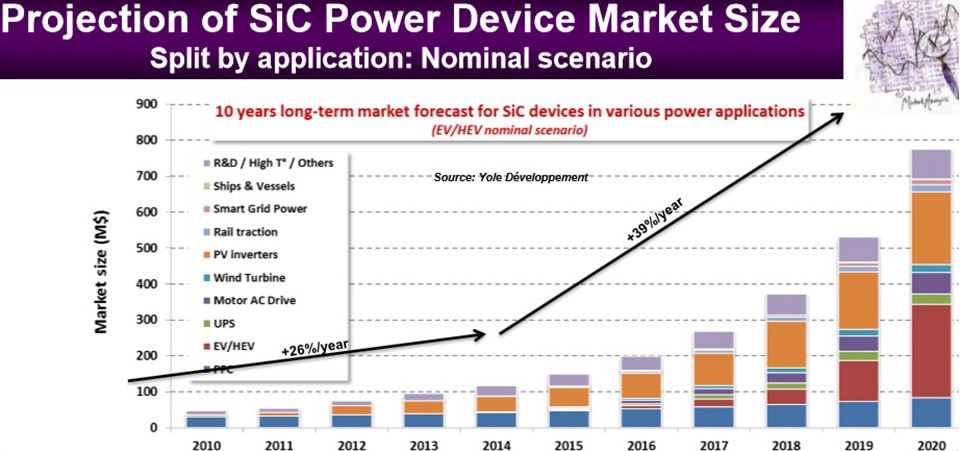 随着SiC生产成本的降低,SiC半导体正在凭借其优良的性能逐步取代Si半导体,打破Si基由于材料本身性能的所遇到瓶颈。无疑,它将引发一场类似于蒸汽机一样的产业革命:
