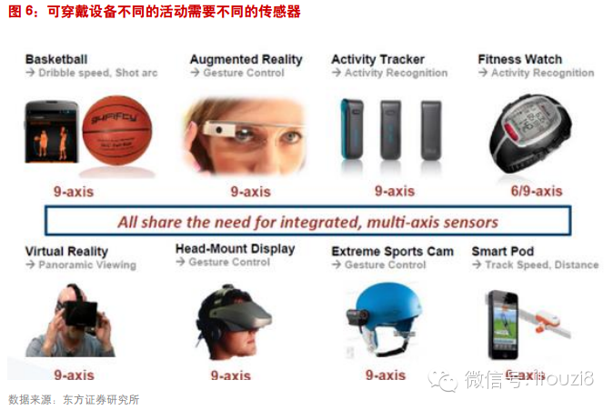 目前惯性传感器在移动终端整体渗透率已经达到一半左右,几乎成为标配,未来除了在移动终端继续渗透外,在穿戴式设备(手环、智能鞋等)上也极具前景。