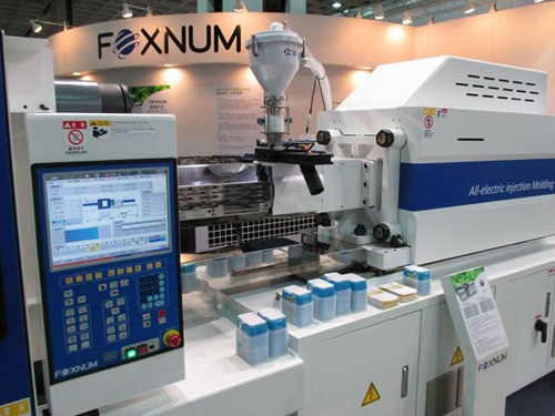 在台北橡塑展上,富士康旗下的赐福科技股份有限公司展示了FAE系列的全电注塑机,锁模力50-450吨,射出速度最高达每秒350毫米,主攻高精密加工市场,包括医疗、包装和电子产业。