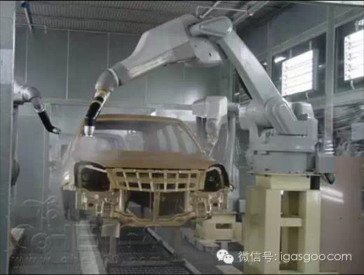 由于油漆含有大量有毒物质,而且人工喷漆效率低、浪费油漆,因此喷漆工艺已经由机器人来完成。
