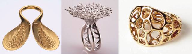 3D打印的叶形金戒指、菌丝银戒指、黄铜戒指