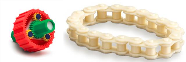 3D打印的ABS行星齿轮和车链模型(图片来源:Stratasys)