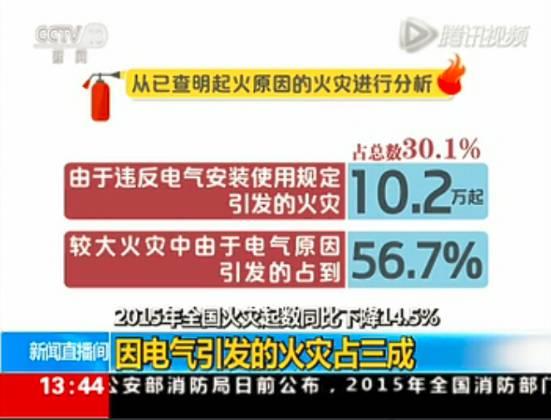 根据公安部消防局统计,2015年全年共发生火灾33.8万起(全国),从已查明原因的火灾看,有10.2万起火灾是由于电气,占总数的30.1%。尤其是较大火灾中有56.7%是由于电气原因引发,而引发家电起火材料原因就是没有使用正确的塑料。