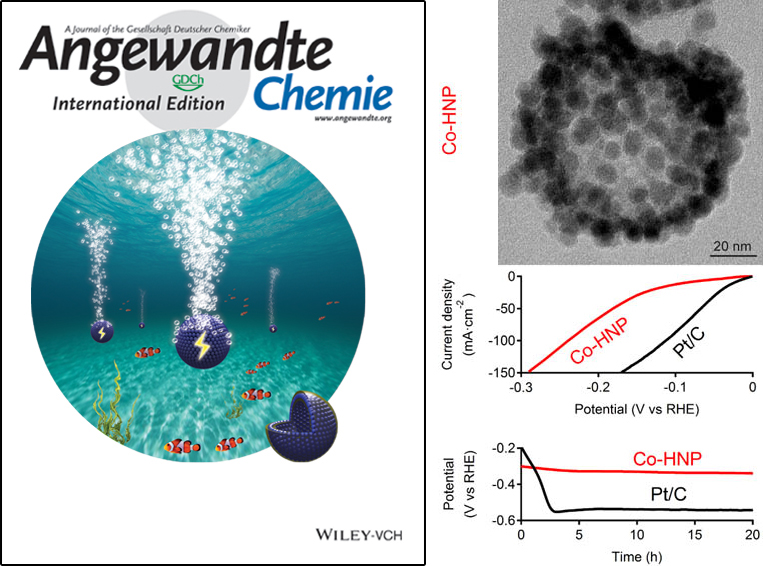 近日,中国科学技术大学教授马明明课题组设计了一种由钴纳米晶自组装形成的纳米空心球,可以作为催化剂在中性水溶液中高效地催化电解水产生氢气,并且可以在大电流密度下长时间稳定工作。该研究成果在线发表在Angew. Chem. Int. Ed.(doi:10.1002/anie.201601367)上,并被选为内封面。论文的第一作者是课题组博士生刘炳瑞。