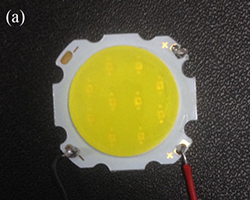图5.(a)GGAG荧光陶瓷;(b)蓝光LED芯片激发发光