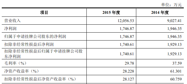 圣帕新材2014年度、2015年度净利润分别为1946.35万元、1746.87万元。