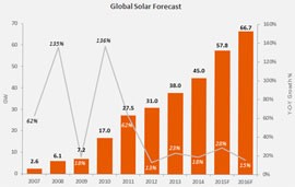 全球光伏装机量或达66.7GW 中国2016年将新增18.5GW