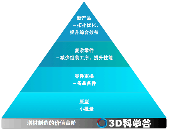 为了更好的理解增材制造设计思路的出发点有哪些,3D科学谷引用金属3D打印设备制造商雷尼绍的分类方式:生产效益往往包括更少的材料浪费,更少的模具费用,更短的加工时间,更简单的组装要求,自动化等等;产品效益包括更轻的产品(例如:轻量化节约燃油等等),更快的新产品投放速度,更高的产品可靠性,更高的产品性能,更好的适应性,更具吸引力的产品,减少库存,更快的反应性。