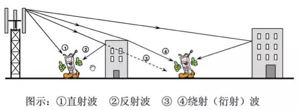 电波在传播过程中,除直接传播外,遇到障碍物(例如,山丘、森林、地面或楼房等高大建筑物),还会产生反射和绕射。因此,到达接收天线的电磁波,不仅有直射波,还有反射波,绕射波、透射波,这种现象就叫多径传输。