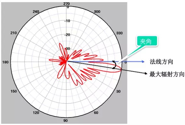 最大辐射指向与天线法线的夹角。