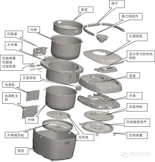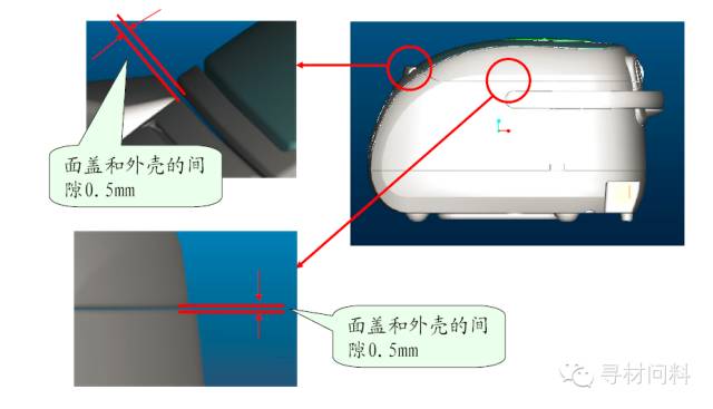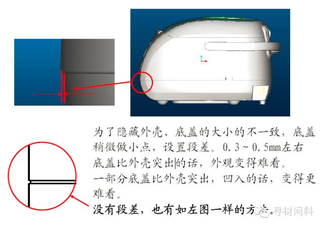 以下通过一些实例对电饭煲设计中一些特有的注意事项进行说明。对于常见的结构设计,如拔模角度、壁厚、孔、加强筋等不再一一论述。