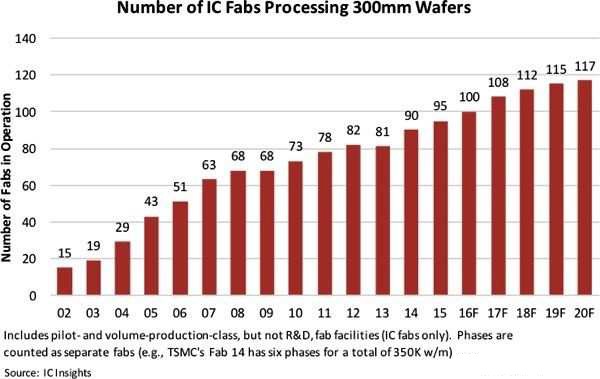 IC Insights报告中其他关于12寸晶圆厂重点还包括: