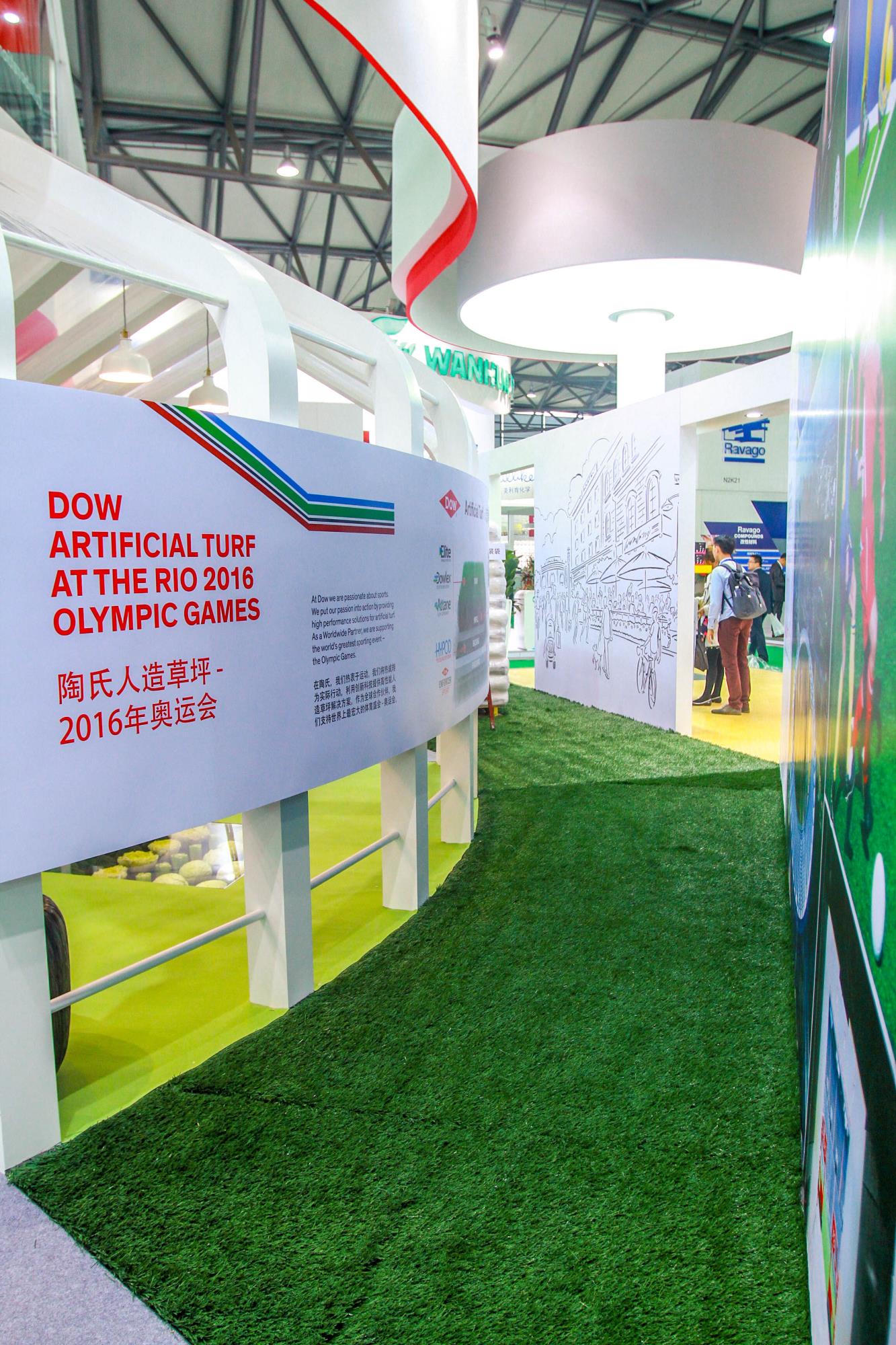 陶氏展台的的另一大亮点是“人造草坪长廊”。在那里,观众近距离感受了由陶氏技术制成的世界级人造草坪的魅力。 2016年里约奥运会曲棍球比赛的正式比赛场地,就将在这些使用了陶氏人造草坪解决方案的地方上演。
