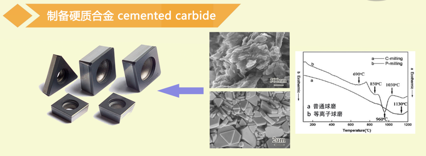 制备高活性层片状的W-C-Co粉末,碳化温度下降了约500℃,生成高性能板状WC-Co合金。