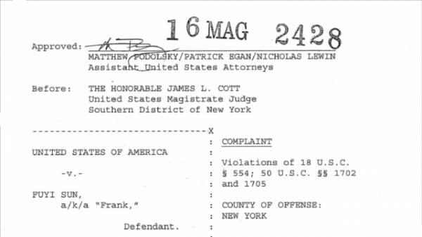 据《美国之音》报道,2016年4月14日,美国法院起诉了一名中国公民,控告他向中国军方走私高性能碳纤维。因为从2011年开始,这位名叫孙服仪(音译:Fuyi Frank Sun)的商人试图非法获得M60JB-3000-50B碳纤维。然而,与他联系并声称可以出售这种碳纤维的美国公司其实是美国国土安全部设立的伪装公司(UC公司)。据称起诉书中说,孙与伪装成美国商人的伪装特工联系时,用“香蕉”代称碳纤维。