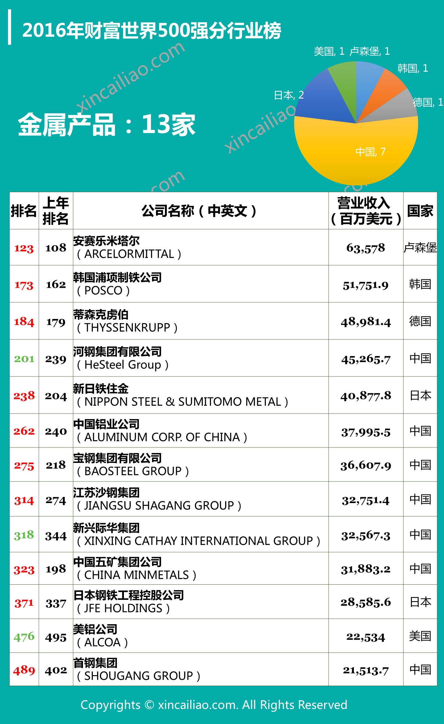 新材料在线特地盘点了500强中的材料公司(主营业务为材料相关的,不包含炼油企业)供您参考。