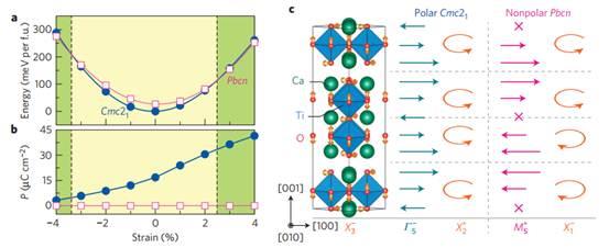 在混杂氧化物薄膜中外延应变能够引起很多现象和新的功能性。应变和极化晶格的强耦合能够稳定新的铁电相或者提高电极化强度和居里温度。最近,Lu和Rondinelli展示了在具有双轴应变的层状A3B2O7杂化铁电材料的(001)薄膜中存在一种极化到非极化的过渡。这种过渡源自于层状氧化物中三线性相关晶格模式相互作用。这一研究结果提供了一种寻找层状氧化物新功能性的新的思路。(Nature Materials DOI:10.1038/NMAT4664)