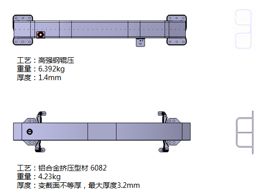 已经在吉利B级车博瑞上采用铝合金前横梁,铝合金横梁相比高强钢滚压前横梁减重2~3kg,并且有更好的碰撞吸能效果,铝合金转向节也正用于博瑞换代车型上,减重60%,降低簧下质量,提高整车操稳性。根据规划铝合金技术后续还将用于更多车身和底盘件上。