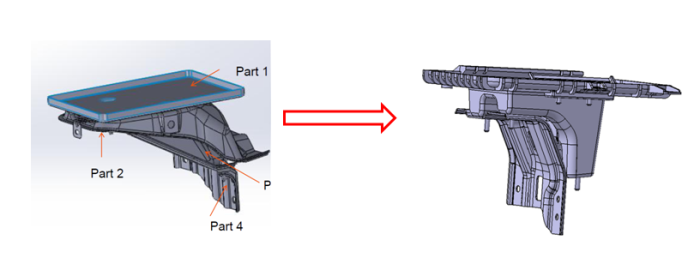PP整体注塑电池托架已经应用于帝豪GS等车型,减重约1kg,并在后续开发车型中大量推广应用。