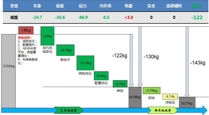 图3-1-2 吉利Sedan B-2车型减重示意图