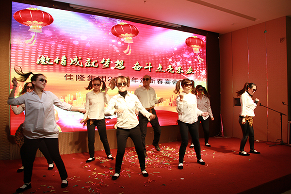 总结大会结束后,在深蓝数码酒店(原黄金大酒店)一楼宴会大厅隆重举行了佳隆集团2017年迎新春宴会,现场气氛热烈,各单位踊跃进行了才艺展示,整个场面充满激情、温馨和感动。宴会最后,董事长高歌一曲《难忘今宵》,将宴会推向最高潮。宴会中间还穿插了幸运抽奖,最终大奖——特等奖由栾鲁闽董事长抽取,海阳毛衫城郭少梅非常幸运的喜获大奖,晚宴在欢歌笑语中圆满结束。