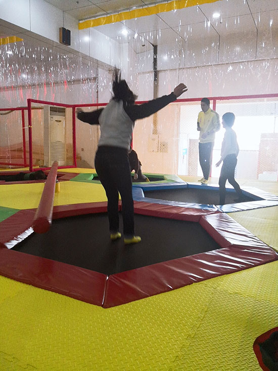 3月8号中午12点,佳隆集团本部、佳隆房地产、合鑫民间资本公司、佳隆古玩文化公司、佳隆会所等单位的全体女职工们相聚大悦城汤姆家的牛排西餐厅聚餐联欢。聚餐后大家到天爱梦幻蹦床公园进行了室内拓展。在弹跳专业教练的组织下,分成两队进行PK。队员们一起参加了飞跃海绵池、碰撞足球、俄罗斯转盘等团体游戏,最终天真无邪队获胜。大家通过弹跳活动,激发了斗志、点燃了激情,增强了集体荣誉感。
