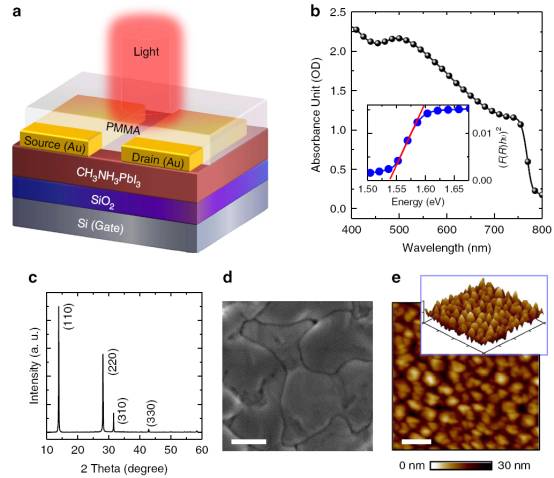 1.双极性溶液加工杂化钙钛矿光晶体管